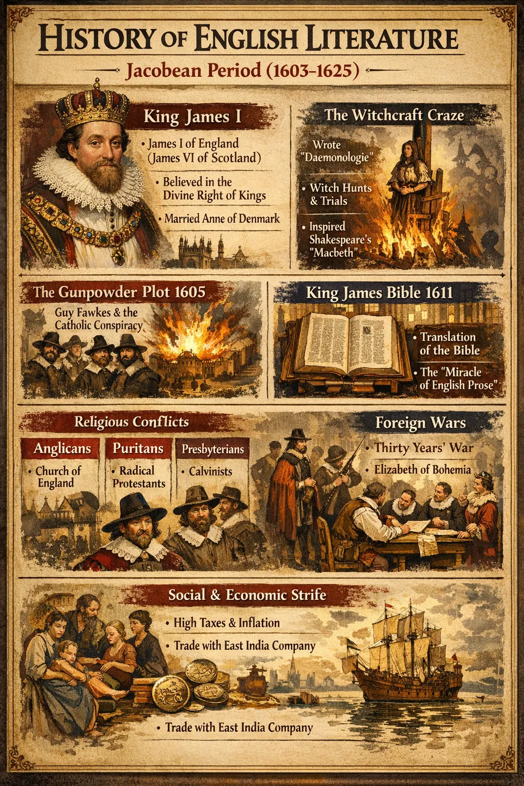 The Jacobean Period refers to the reign of King James I in England. It is marked by political tension, religious conflict, and significant literary development.